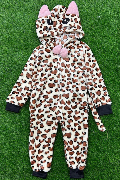 Girls Cheetah Printed Bodysuit With Cozy Fur