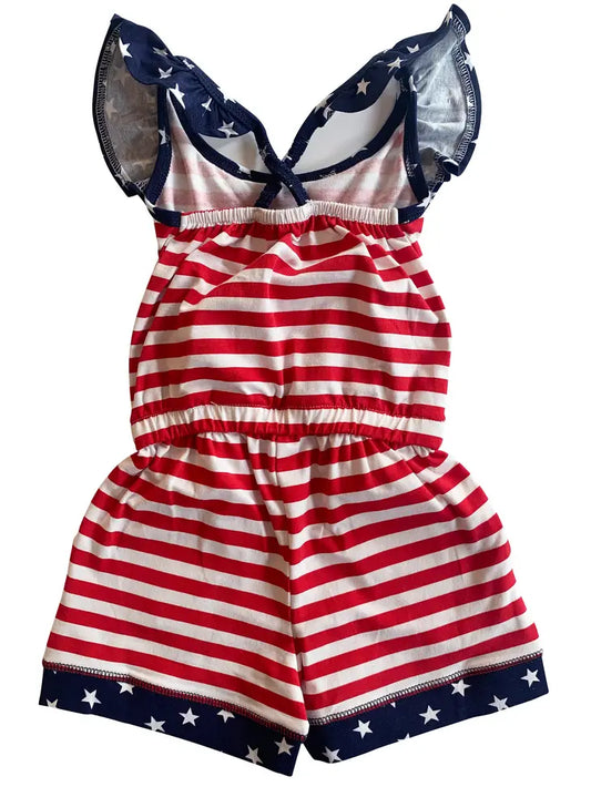 Girls Ann Loren Red, White and Blue Tie Dye Shorts Jumpsuit
