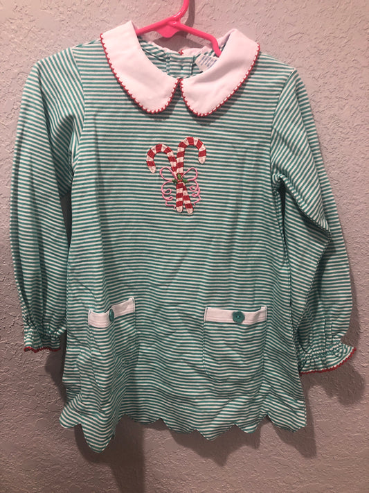 Girls Striped Romper or Dress w/Candy Canes by Ishtex