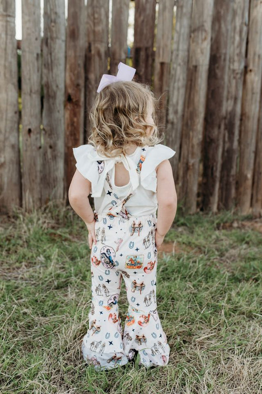 Girls Pink Vintage Cowgirl Bell Overalls by Shea Baby