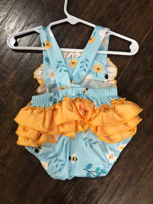 Girls Green Floral Puff Sleeve Romper by Swoon Baby
