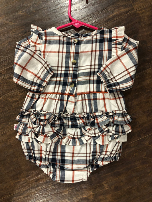Girls Homegrown Harvest Plaid Ruffle Trim Bubble by RuffleButts