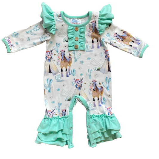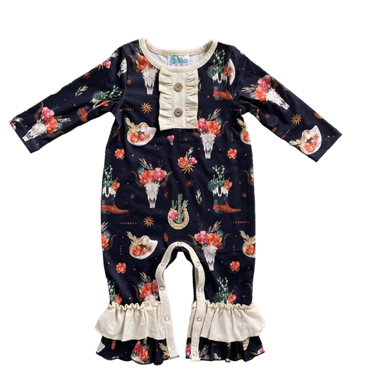 Girls Steer Head Floral Ruffle Long Sleeve Romper by Shea Baby