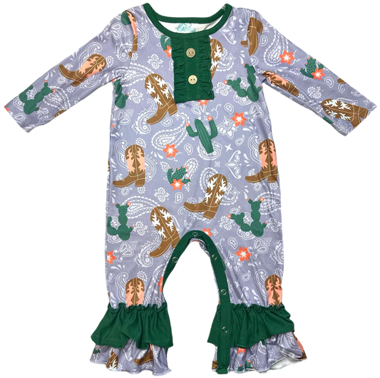 Girls Cactus Boot Long Sleeve Romper by Shea Baby