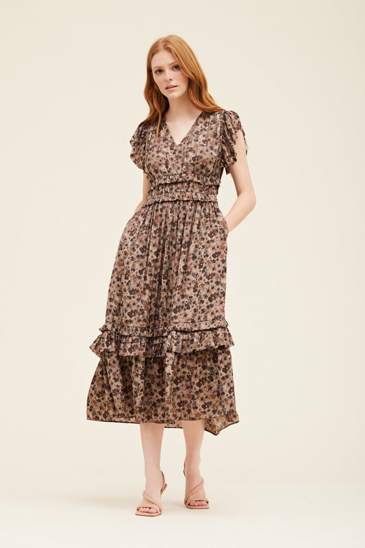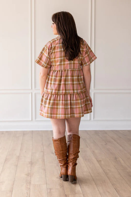 Ladies A Walk Through The Leaves Plaid Flutter Sleeve Dress by Grace & Emma