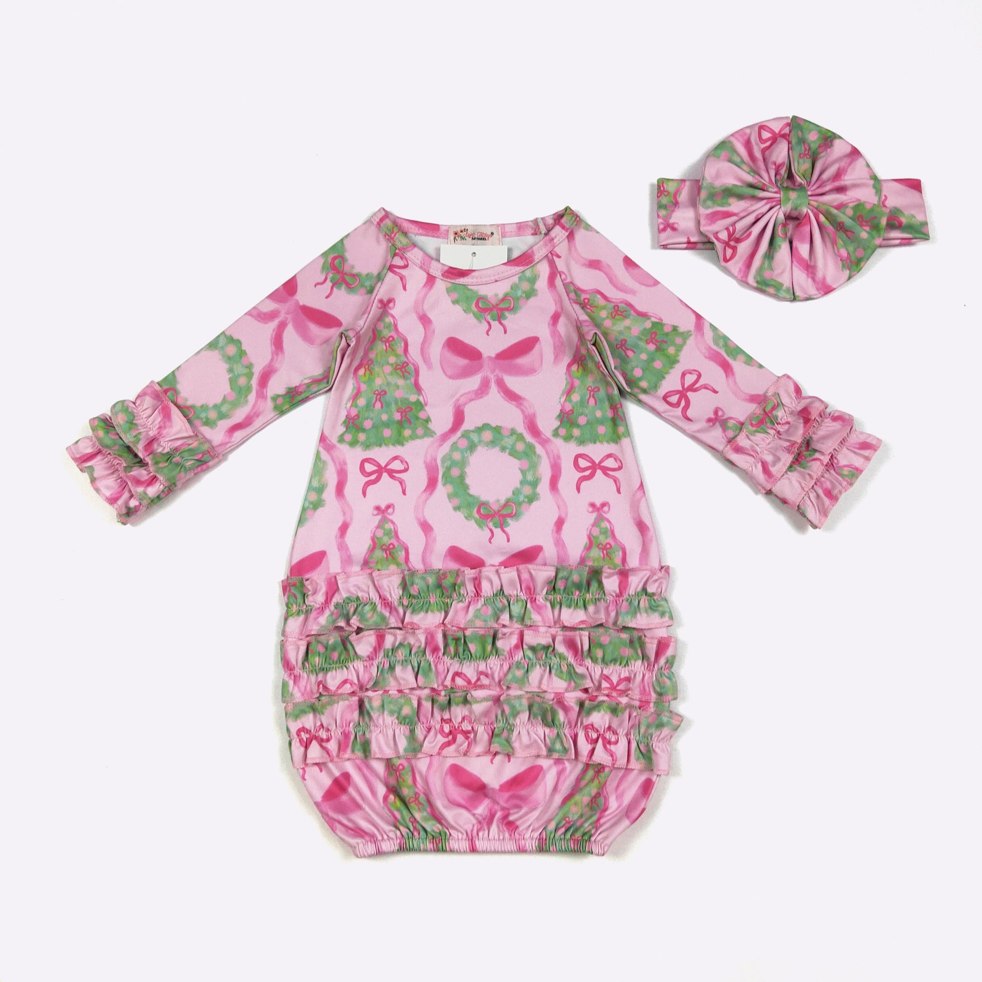 Baby Girls Clover Cottage Fuchsia Wreath Baby Gown