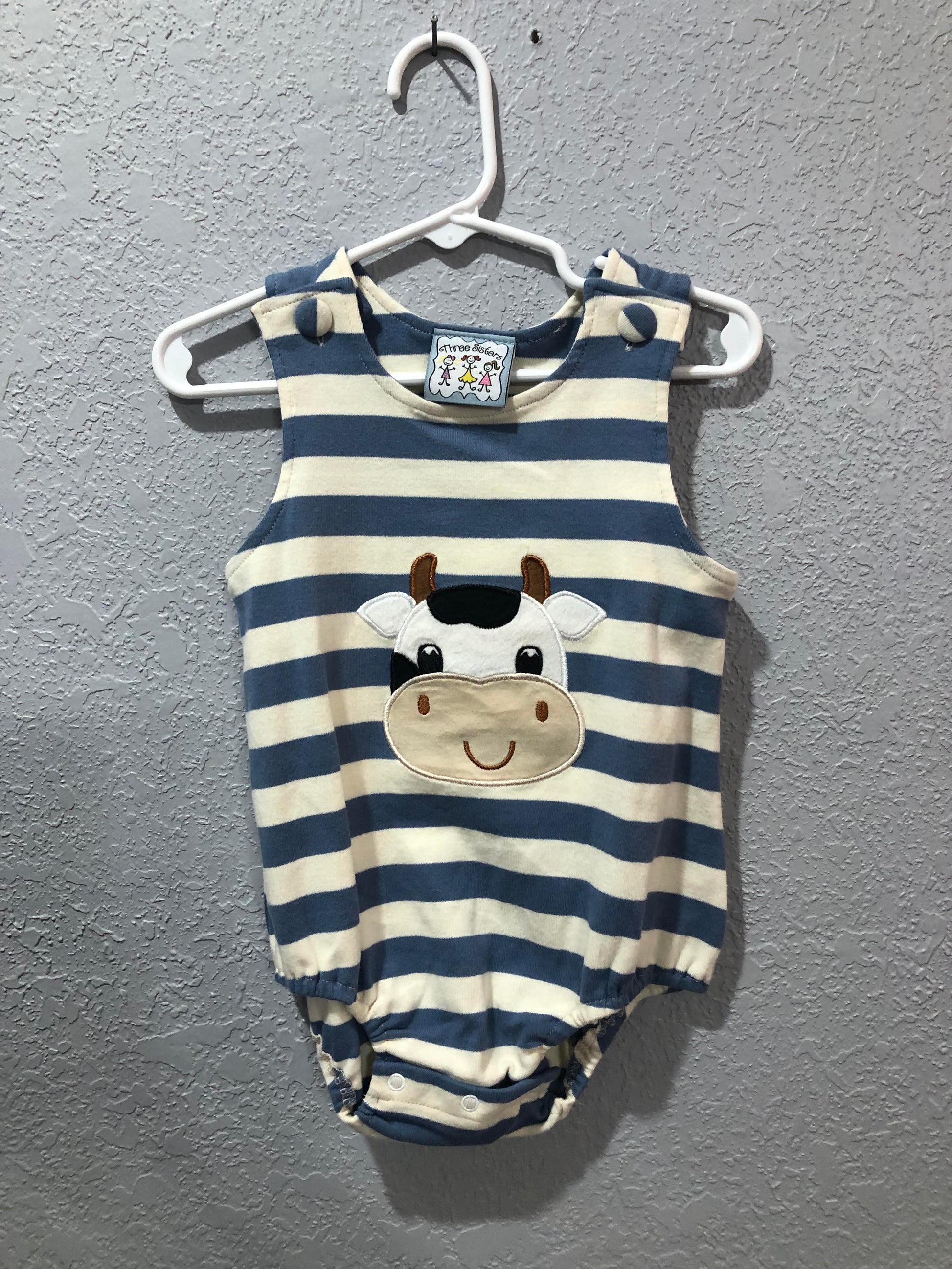 Boys Blue and Cream Stripe Onesie with Cow Applique by Three Sisters