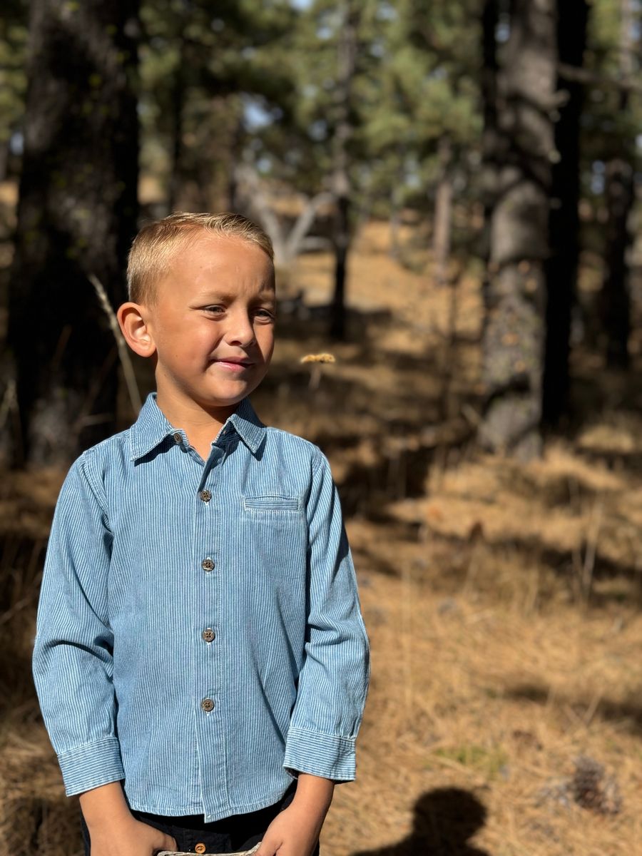 Boys Denim/White Stripe Atwood Woven Shirt by Me & Henry