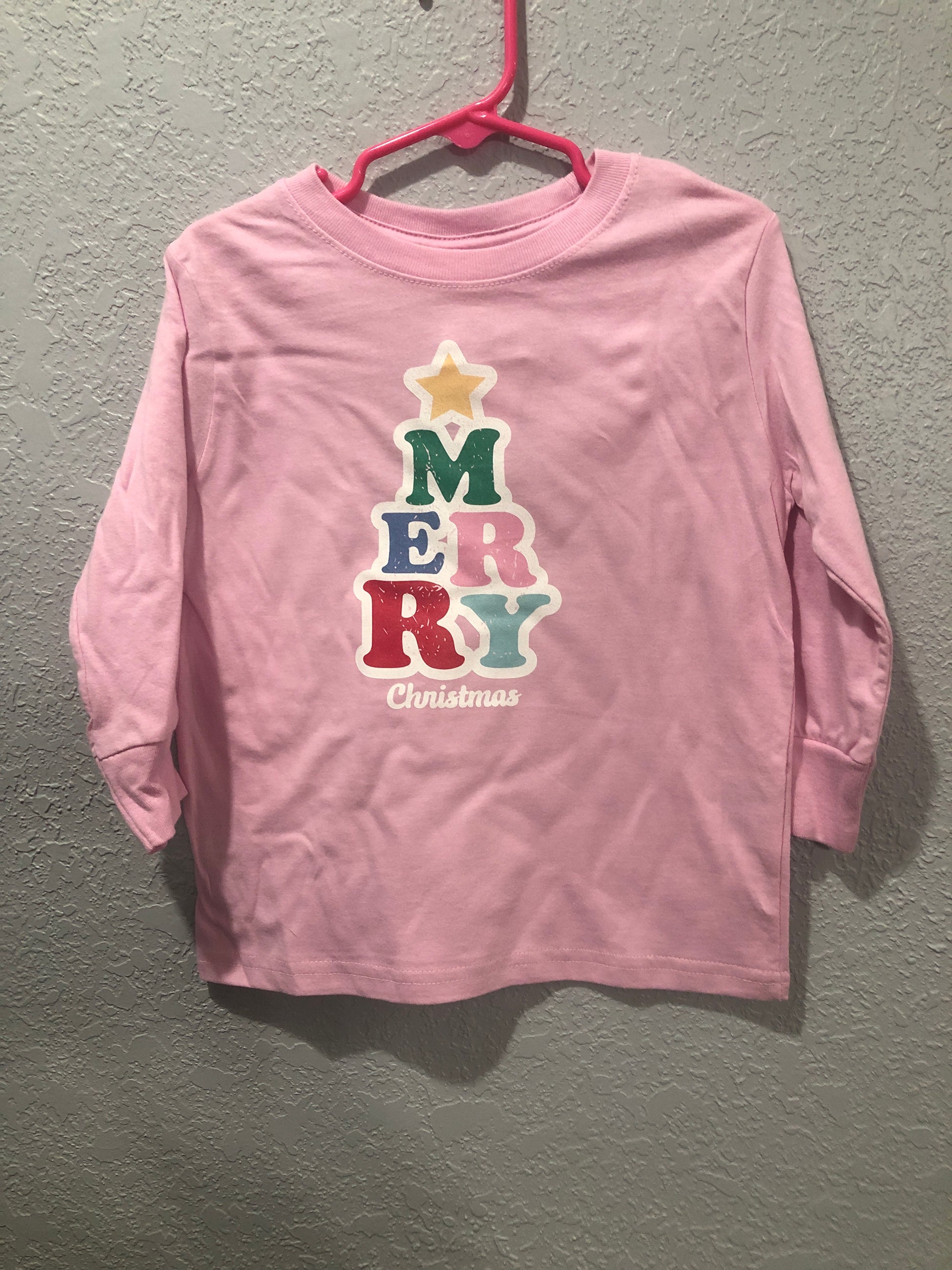 Girls Pink Merry Christmas L/S Tee by Life in the South