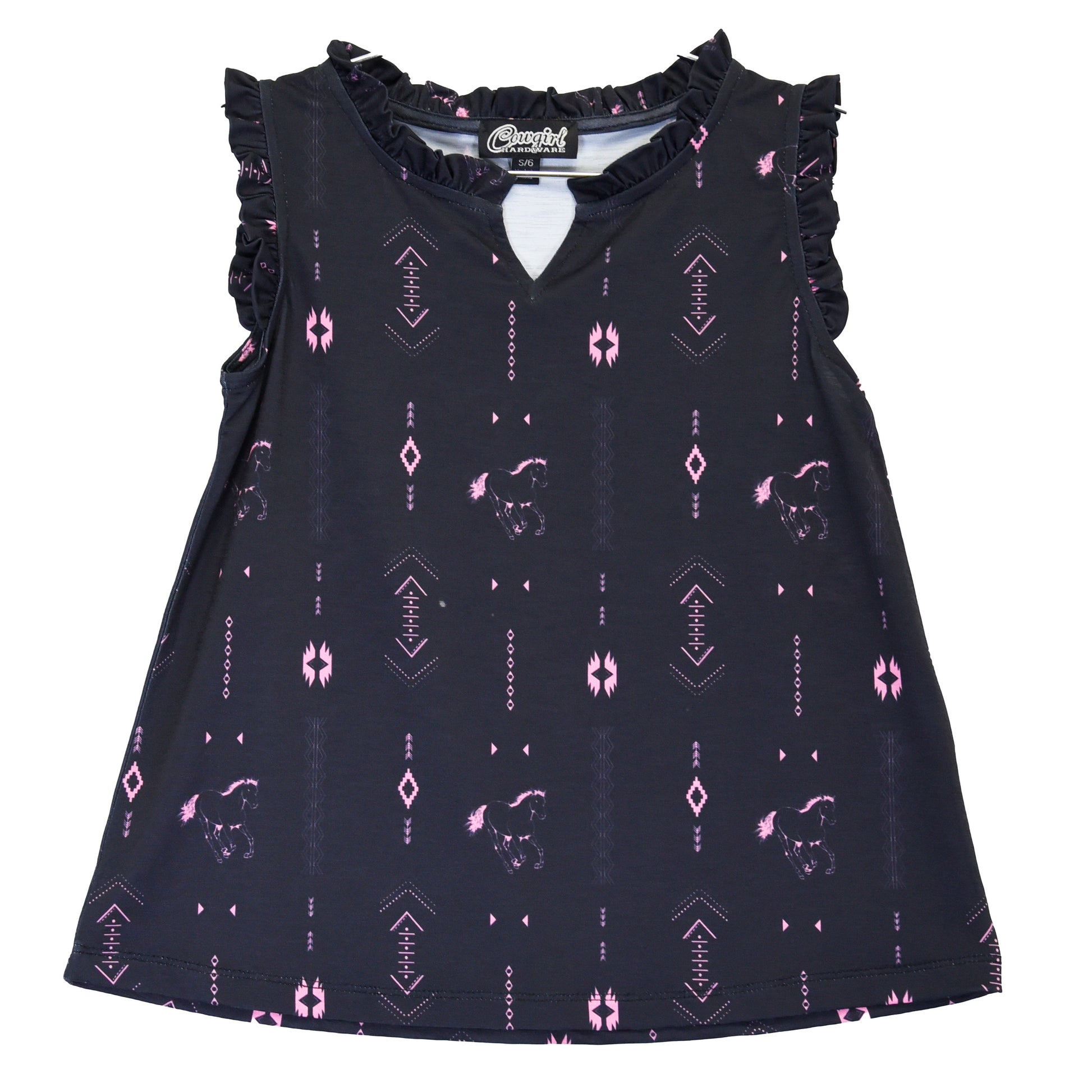 Girls Horse Aztec Ruffle Trim Tank Top by Cowboy Hardware