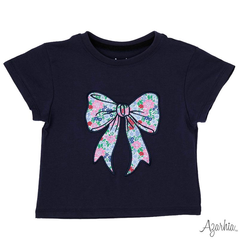 Girls Navy London Floral Bow Boxy by Azarhia