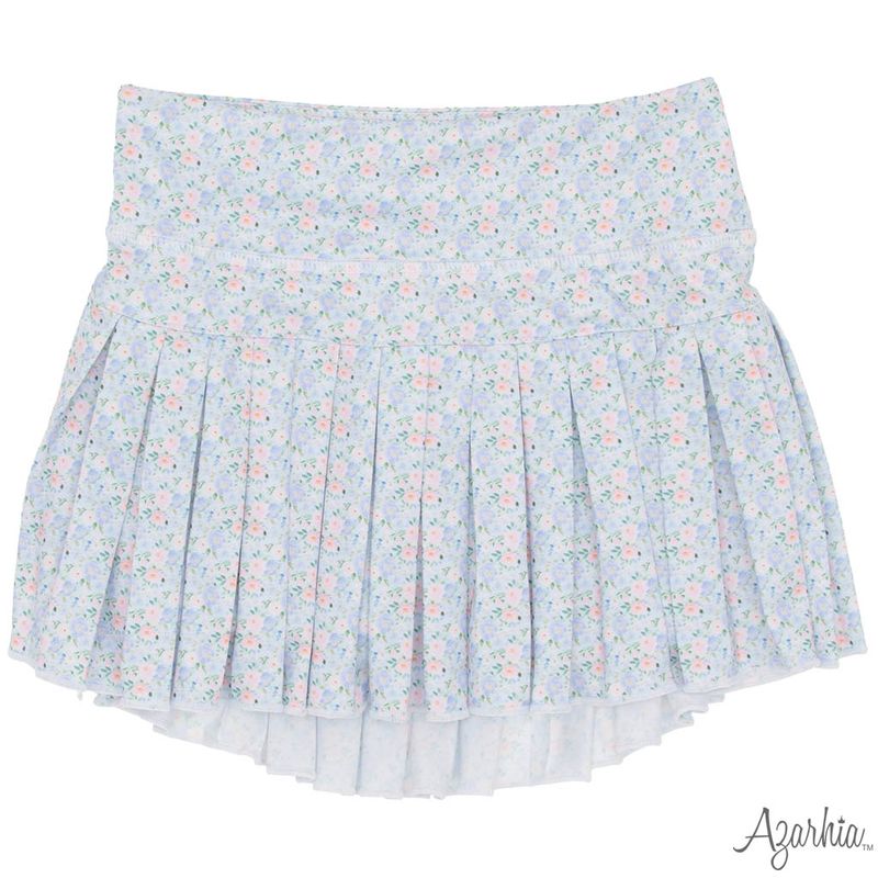 Girls Grand Blue Flowers Mini Pleat Skort by Azarhia