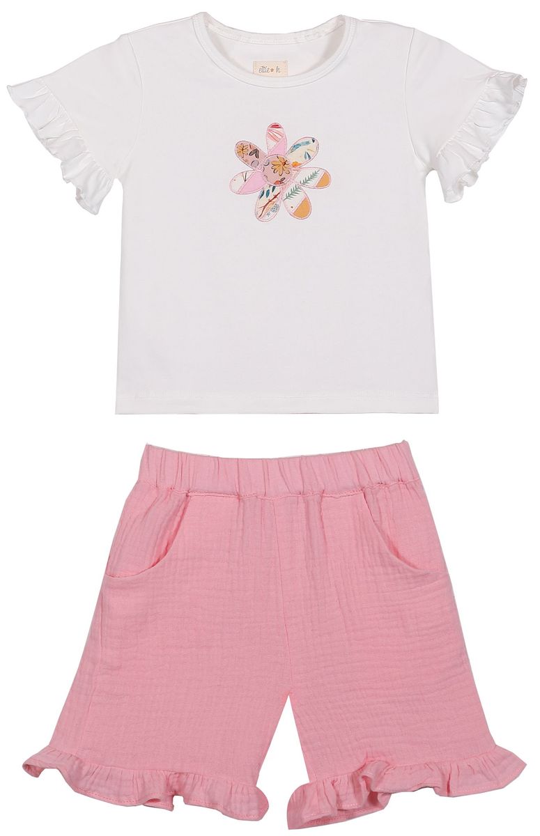 Nina 2 piece shorts and tee set - flower applique