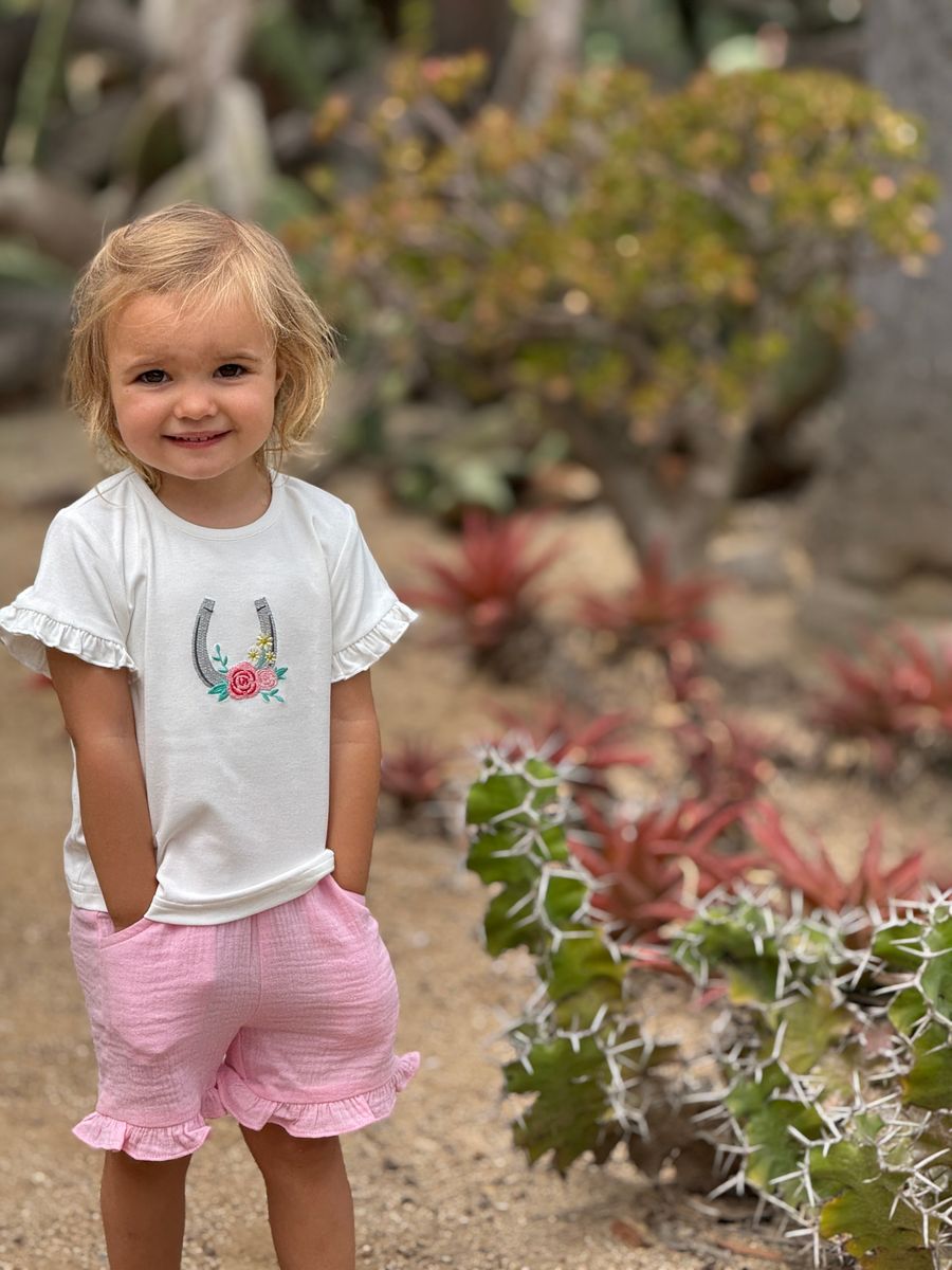 Girls Nina 2 Piece Shorts and Tee Set-Horseshoe