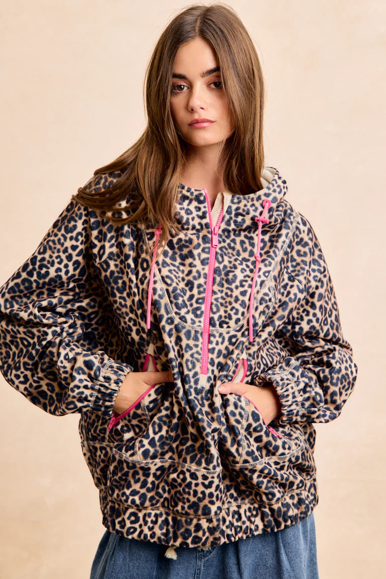 Leopard Stitch Oversized Brushed Texture Jacket-Pink