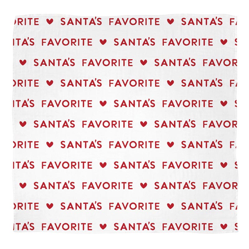 his "Santa's Favorite" swaddle and Santa rattle set for babies, the perfect gift to celebrate the holiday season and keep any little one cozy and comfortable. This charming set includes a soft and snug swaddle blanket and a matching rattle tied together with a sweet twill ribbon making the set gift ready.